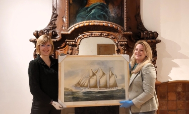Maaike Modderman: “In verband met onze verbouwing is de kans heel klein dat we deze twee aquarellen in de nabije toekomst gaan tentoonstellen en dat is jammer. Met de bruikleengevers hebben we gekozen voor overdracht naar het Veenkoloniaal Museum, hier komen de portretten uitstekend tot hun recht”. Dat beaamt Celine Vister. Ze is heel blij met de schilderijen. “Een uitstekend voorbeeld van de wereldse aard van de Groningers. Niet veel mensen weten dat meer dan 60% van de Nederlandse vloot in de negentiende eeuw uit Groninger schepen bestond. Het waren vaak familieondernemingen, met geëmancipeerde vrouwen aan boord die een actieve en belangrijke rol vervulden. De Groningers gingen op relatief kleine schepen de gevaren van de zee aan, wat veel lef vereiste. En toch deden ze het massaal en met veel succes. Deze twee mooie scheepsportretten zijn een tastbare herinnering hieraan.”